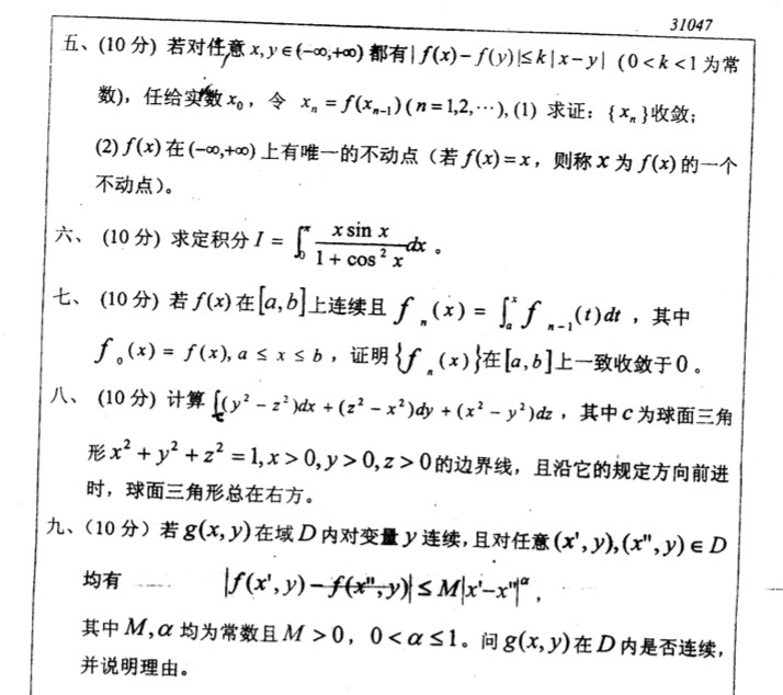 湖南师范大学2004-2005高等代数数学分析考研真题(10)