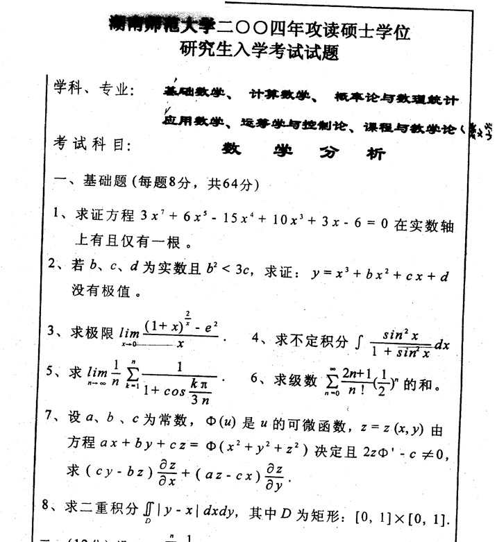 湖南师范大学2004-2005高等代数数学分析考研真题(6)