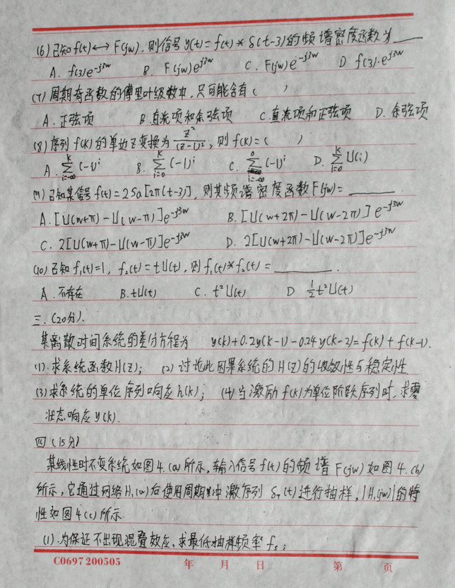 西北工业大学2009信号与系统研究生入学考试笔试题(2)