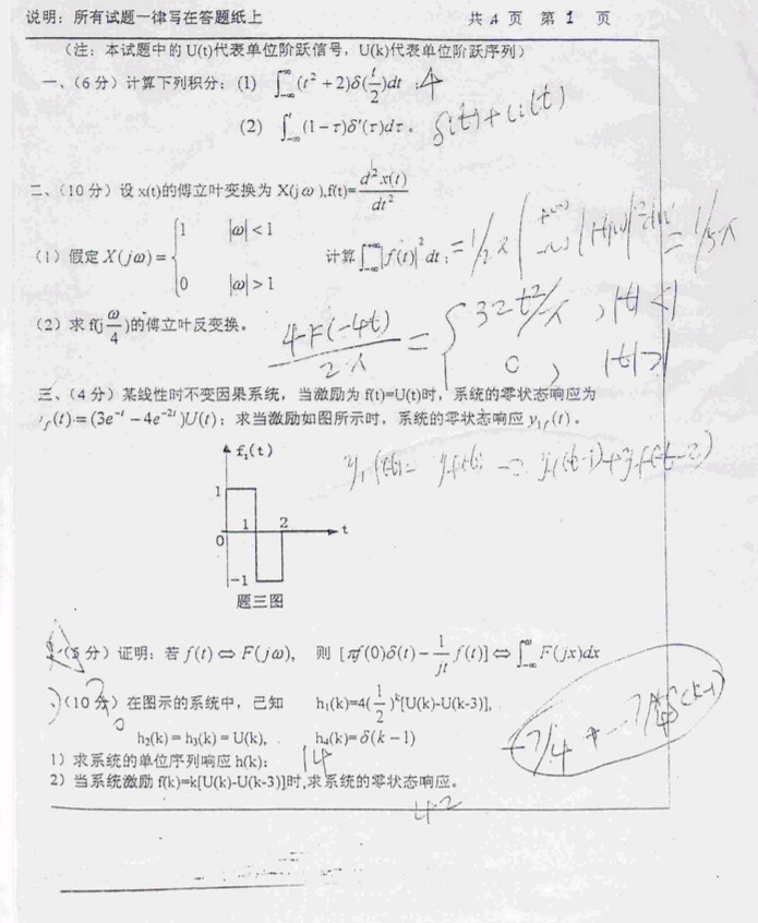 西北工业大学2002信号与系统研究生入学考试笔试题