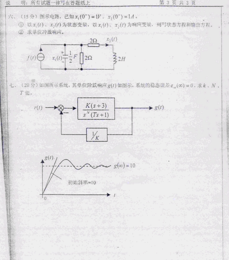 西北工业大学2003信号与系统研究生入学考试笔试题(3)
