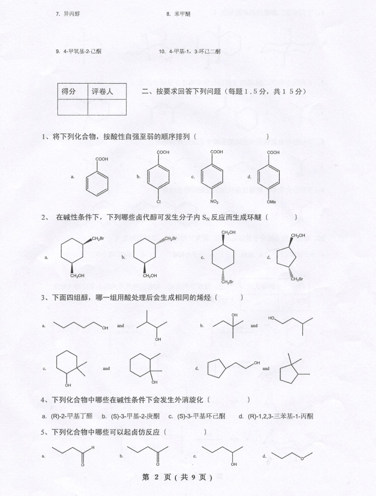 陕西师范大学2014-2015学年化学专业有机化学下期中考试试题(2)