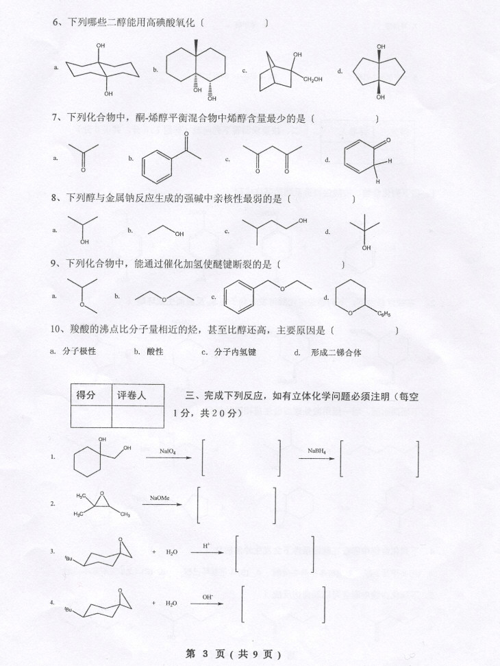 陕西师范大学2014-2015学年化学专业有机化学下期中考试试题(3)