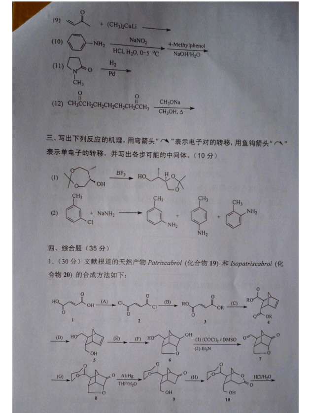 • 陕西师范大学2014-2015学年化学专业有机化学下期中考试试题