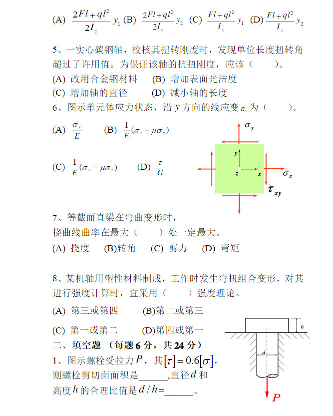 • 吉林大学材料力学期末考试试题 车辆工程考研必备