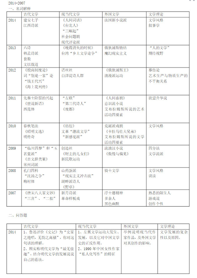 专业课考研资料 本站小编 网络资源 2015-07-16中国古代文学史部分(共75分)