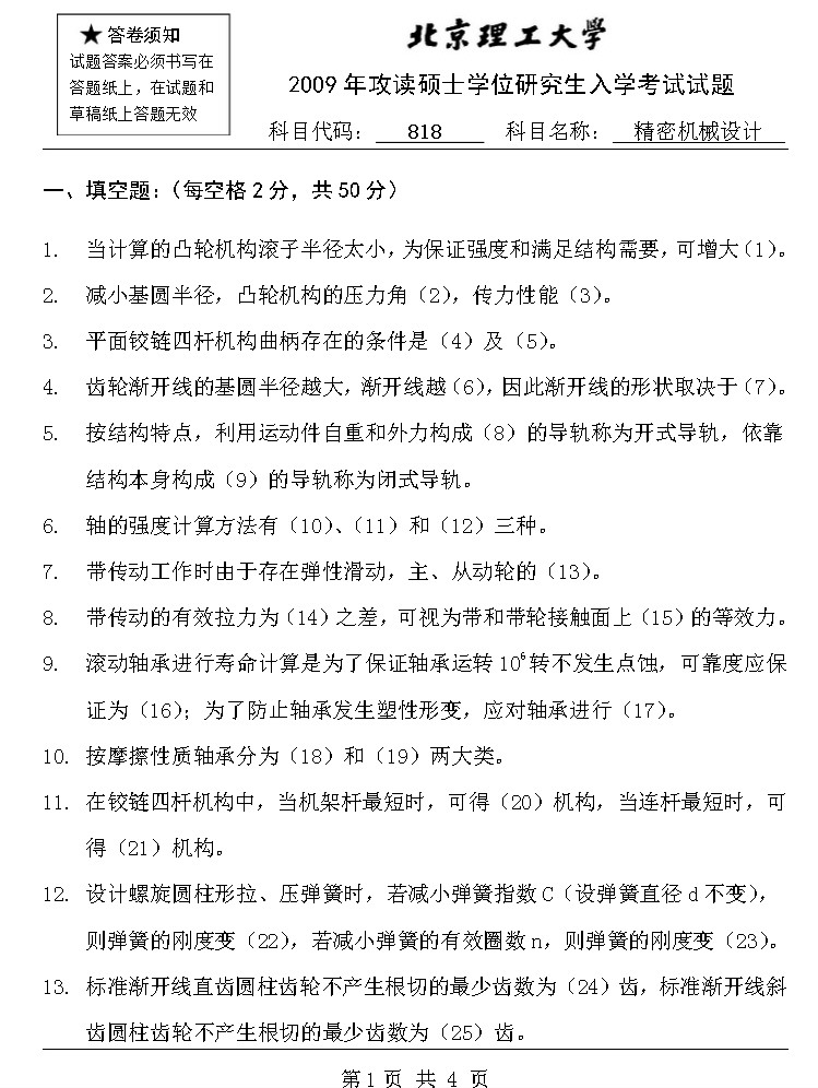 考试科目:机械设计基础