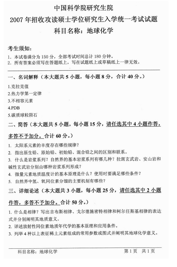 中国科学院2011-2006地球化学考研真题扫描版合集(2)