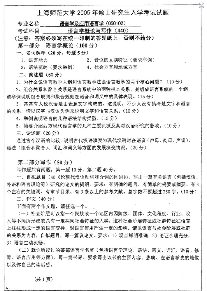科目名称:语言学理论 科目代码:635
