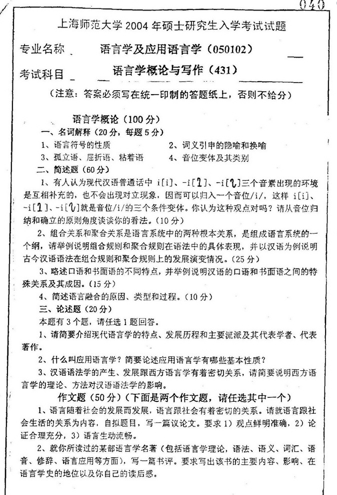 专业课考研资料 本站小编 网络资源 2015-07-132014年中国传媒大学语言学与应用语言学考研真题