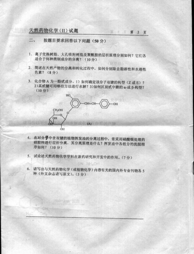 江苏大学医学院2004年天然药物化学 ...医学考研资料 网络资源 免费考研网 2009-01-14中国药科大学2002年天然药物化学(硕士)