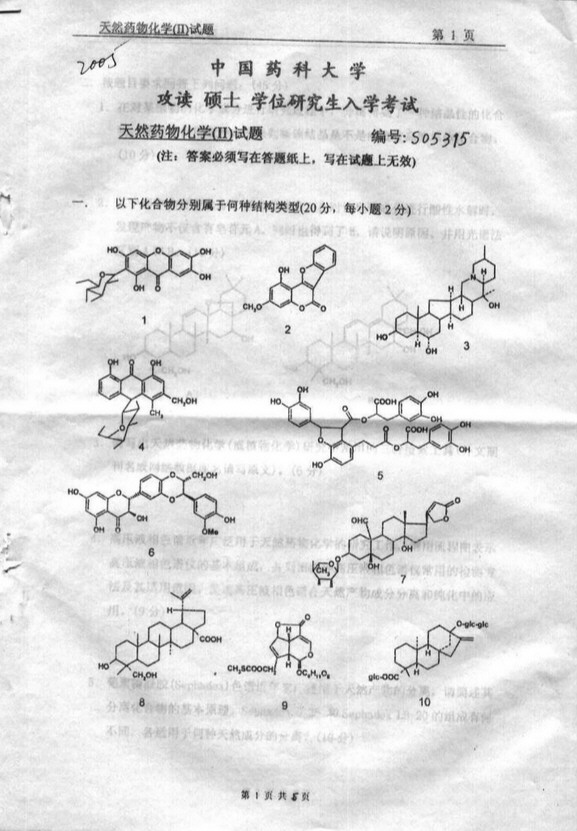 江苏大学医学院2004年天然药物化学 ...医学考研资料 网络资源 免费考研网 2009-01-14中国药科大学2002年天然药物化学(硕士)