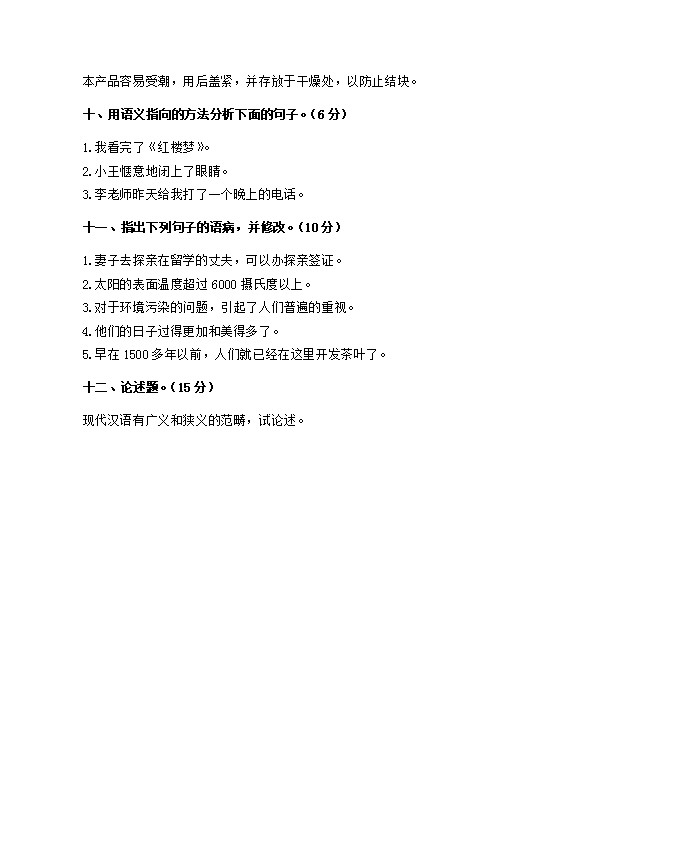 一、现代汉语部分