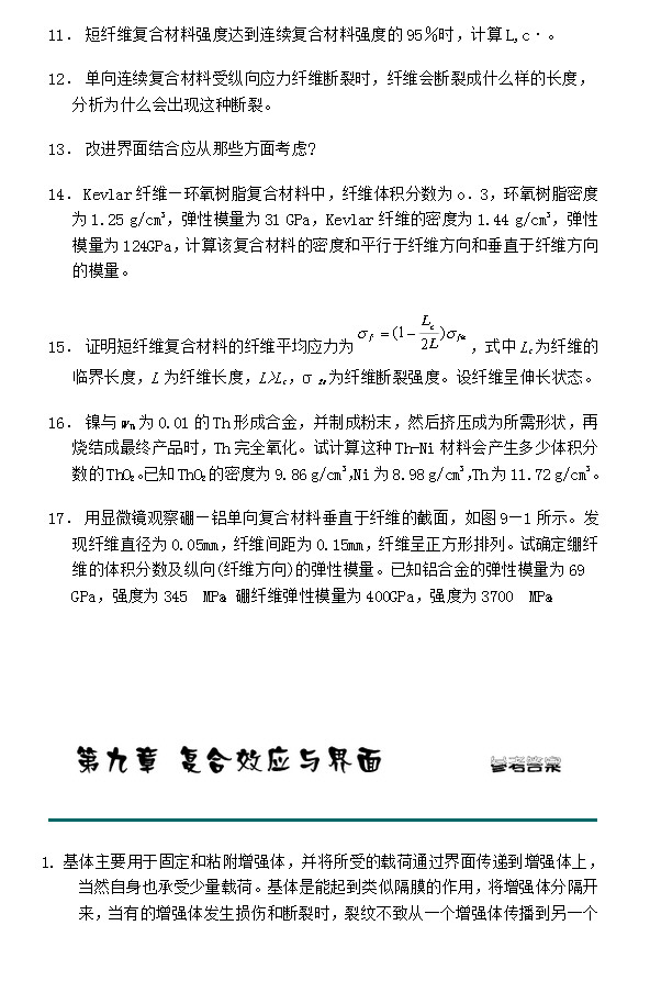 西北工业大学材料考研必看练习题 第9章 复合效应与界面(2)