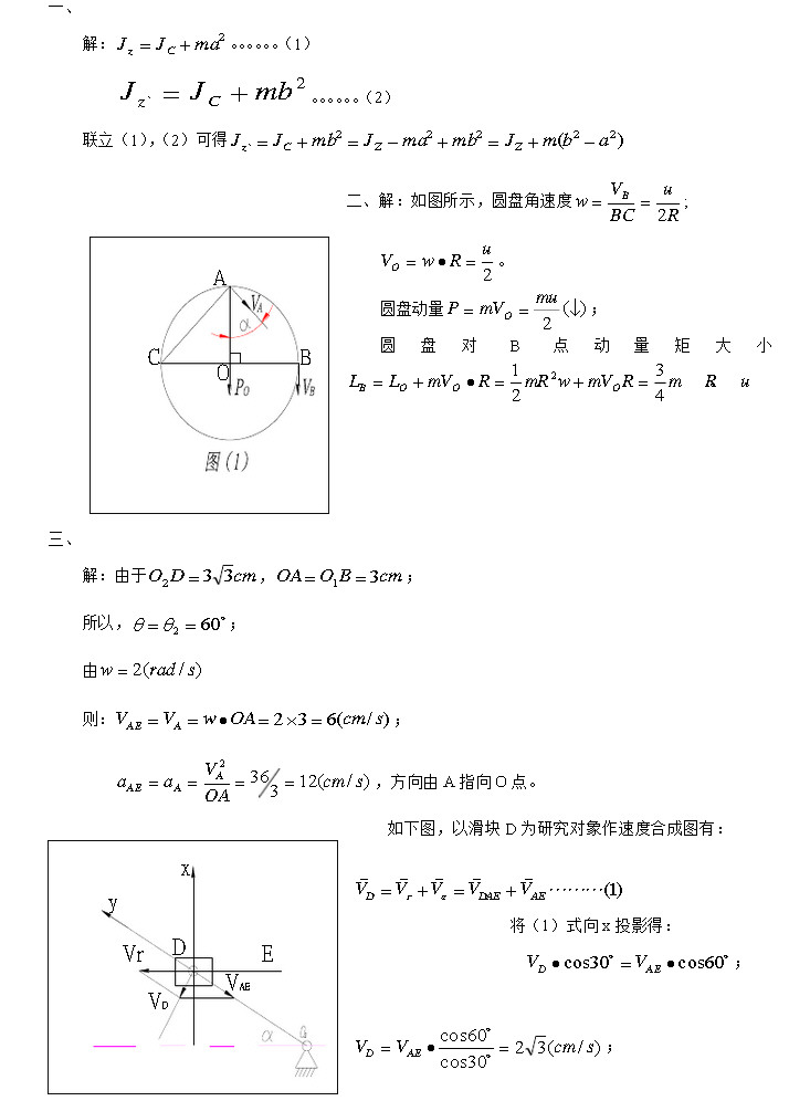复旦大学2007年理论力学考研真题参考答案