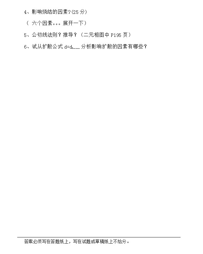 专业课考研资料 本站小编 网络资源 2015-09-21西北工业大学材料考研必看练习题 第5章 固体中的扩散