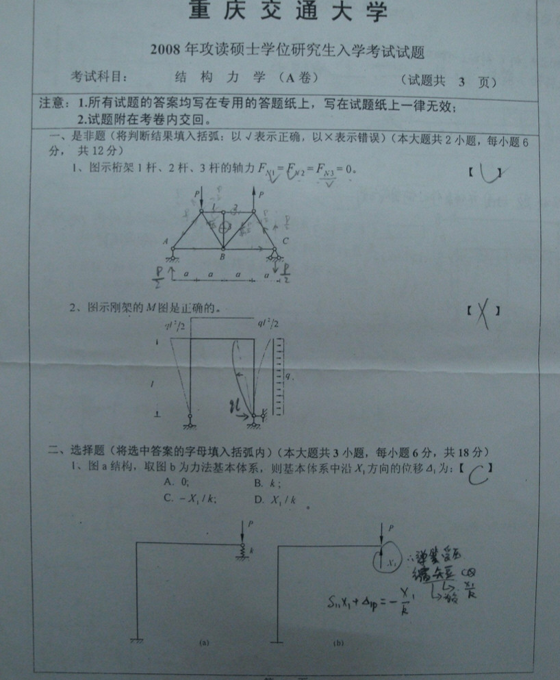 专业课考研资料 本站小编 免费考研网 2015-06-21西安建筑科技大学结构力学试卷(C)