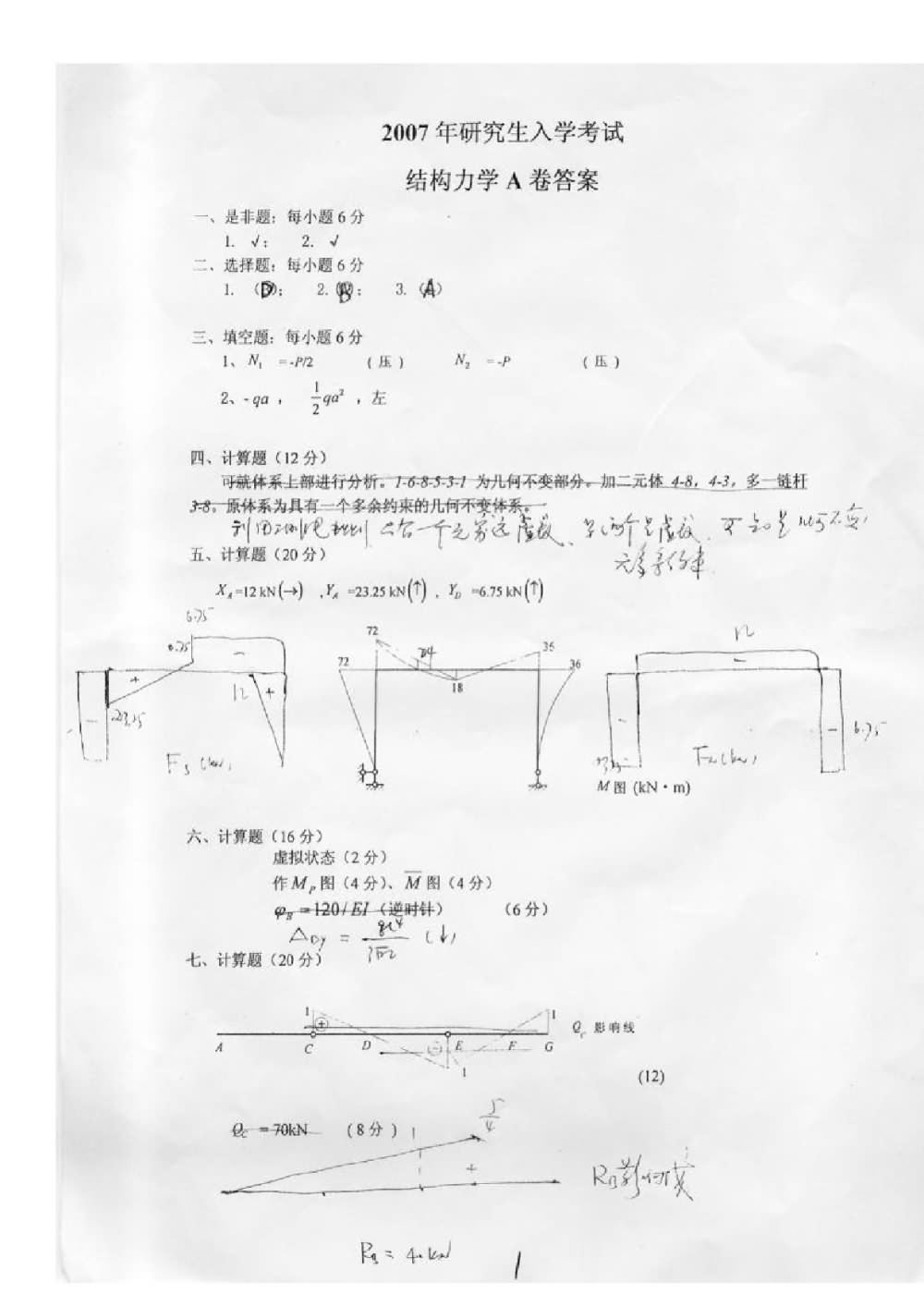 专业课考研资料 本站小编 免费考研网 2015-06-21西安建筑科技大学结构力学试卷(A)