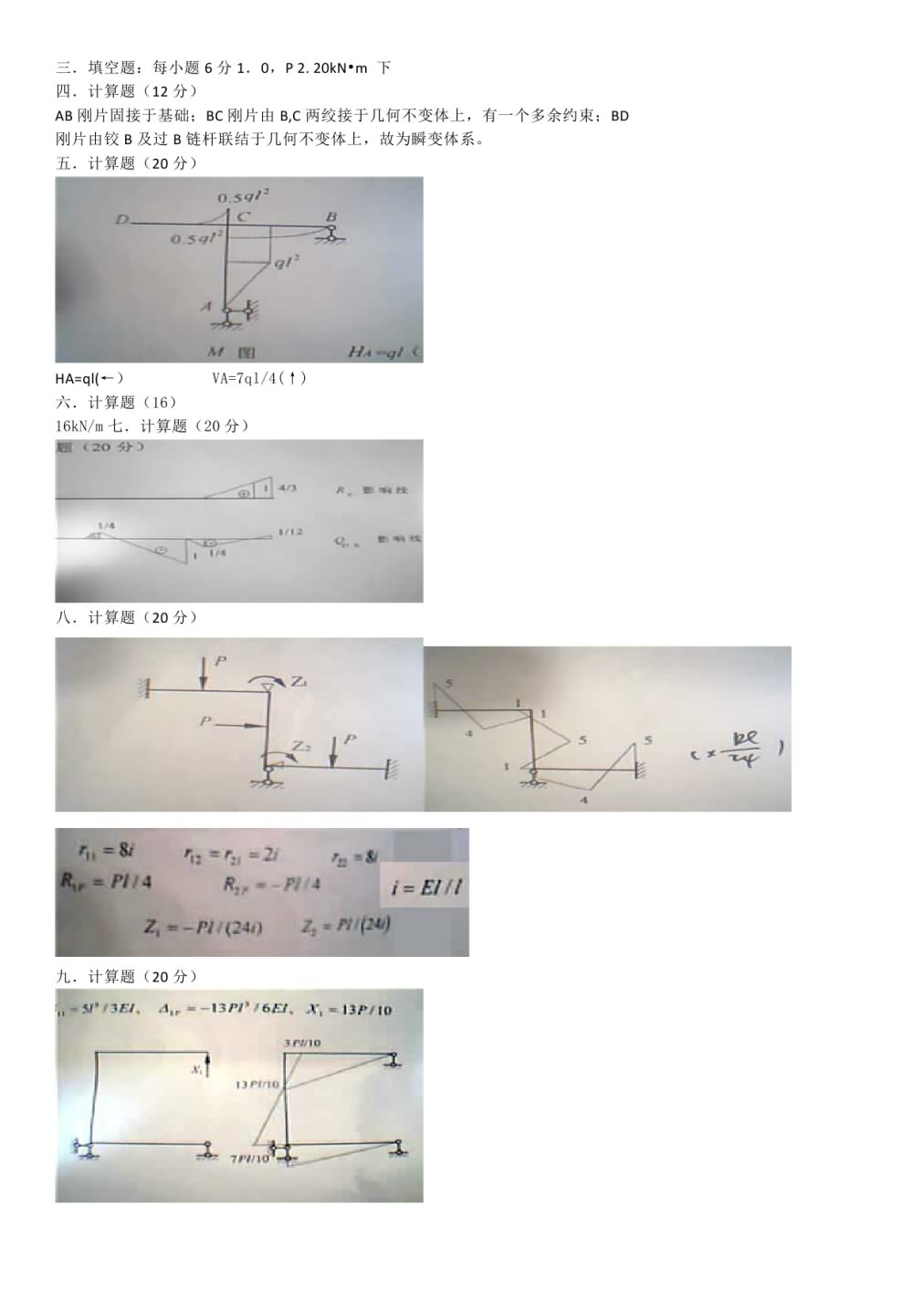 专业课考研资料 本站小编 免费考研网 2015-06-21西安建筑科技大学结构力学试卷(C)