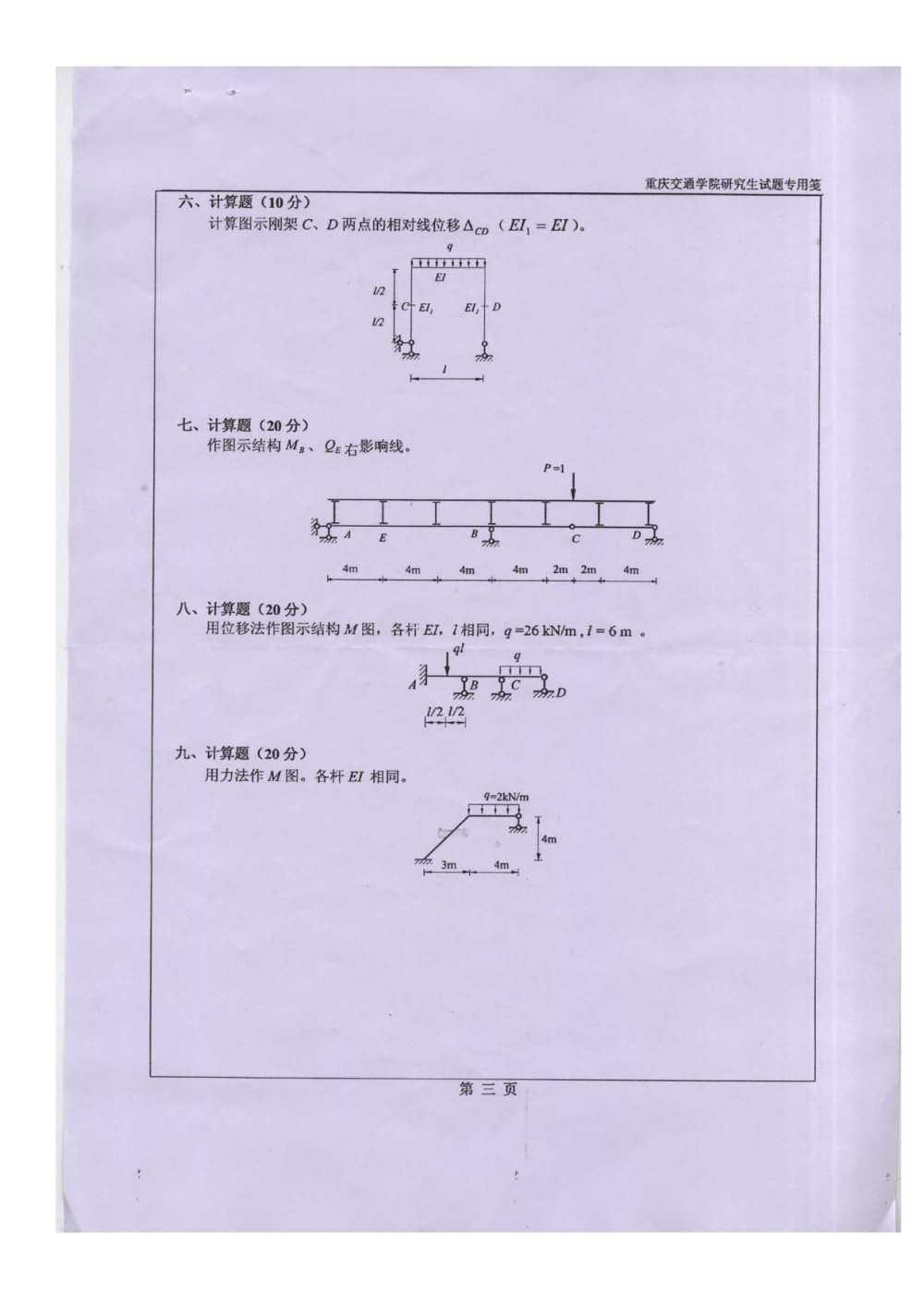 重庆交通大学2007-2004结构力学A卷考研真题(2)