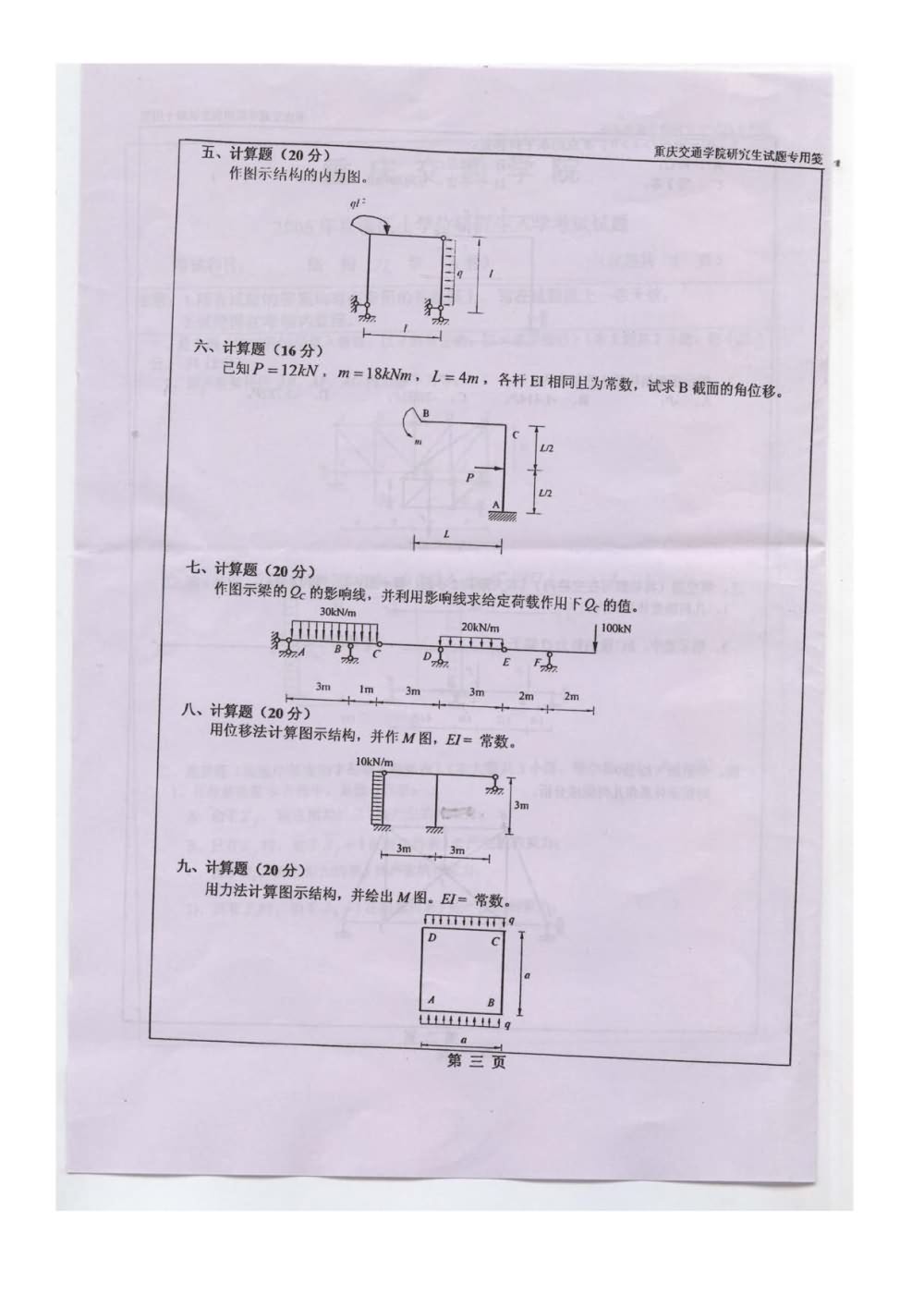 专业课考研资料 本站小编 免费考研网 2015-06-21西安建筑科技大学结构力学试卷(C)