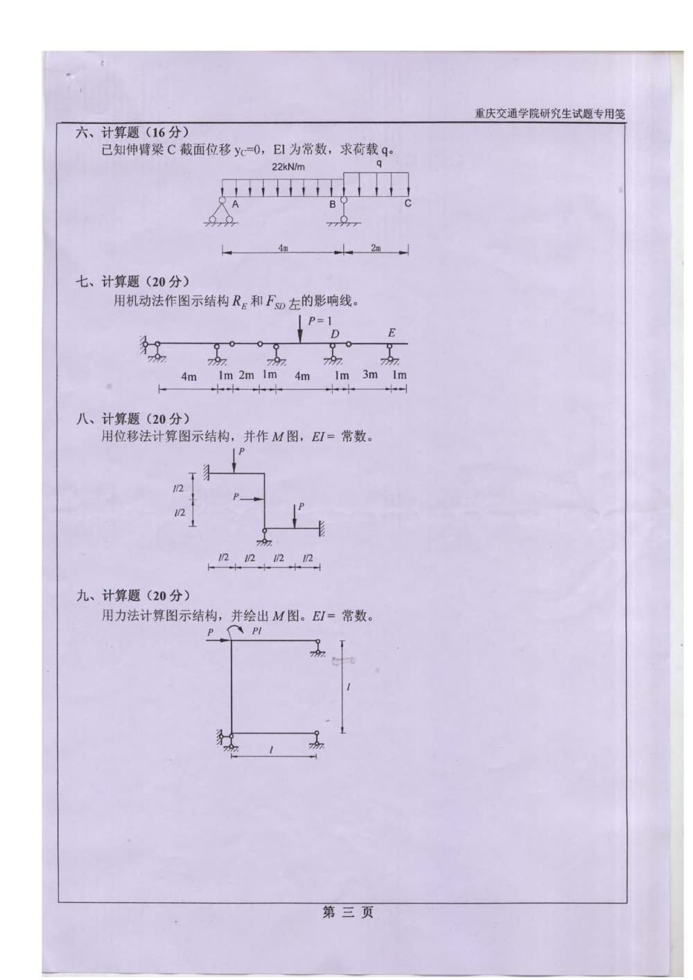 专业课考研资料 本站小编 免费考研网 2015-06-21西安建筑科技大学结构力学试卷(C)