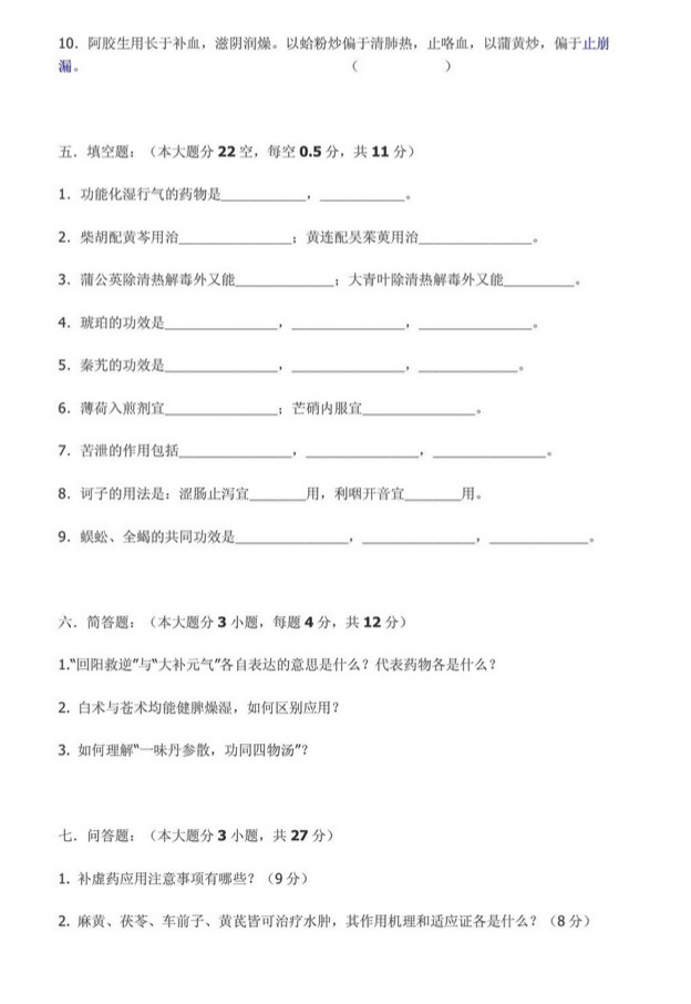 南京中医药大学中药学试卷一(6)