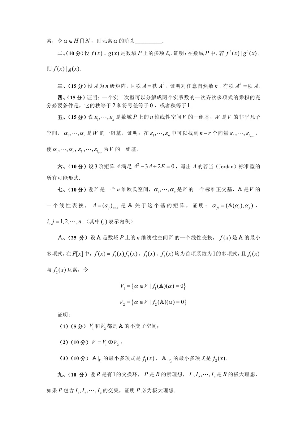 2000-2009年大连理工大学高等代数考研试题(15)