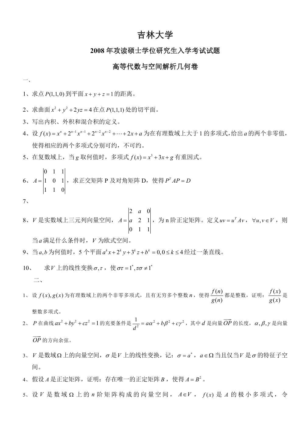 2006-2010吉林大学高等代数考研真题(5)