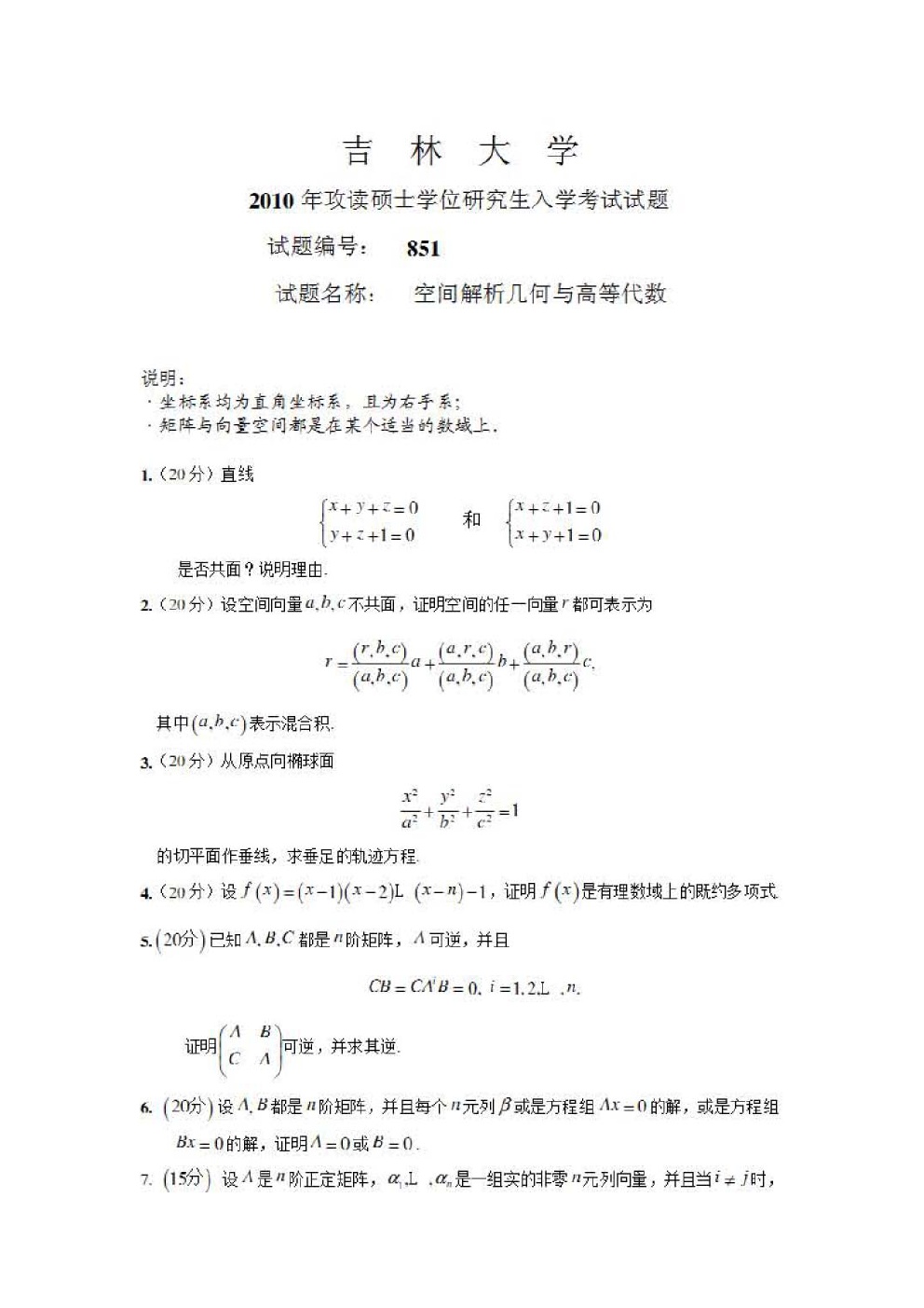 专业课考研资料 本站小编 免费考研网 2015-06-172010年华南师范大学高等代数(回忆版)考研真题