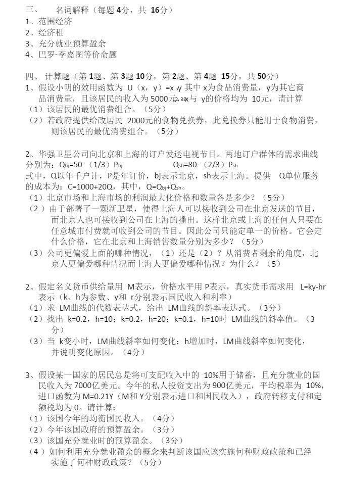 对外经济贸易大学2015年硕士初试试题 815经济学综合(3)