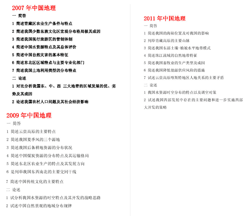 云南师范大学2000-2012中国地理考研真题(6)