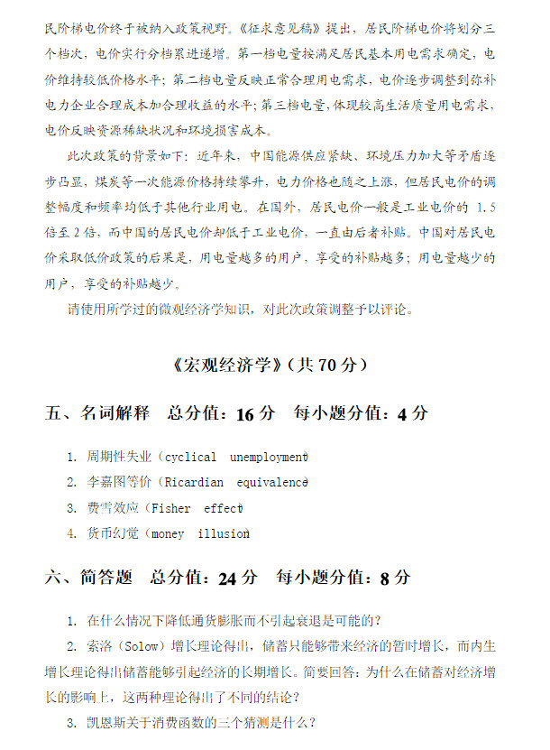 • 武汉大学2009宏微观经济学819专业课试题及答案