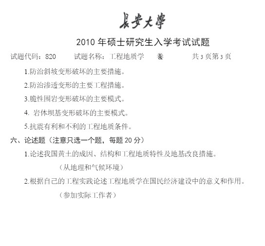 2010年长安大学地质工程硕士研究生入学考试试题(3)