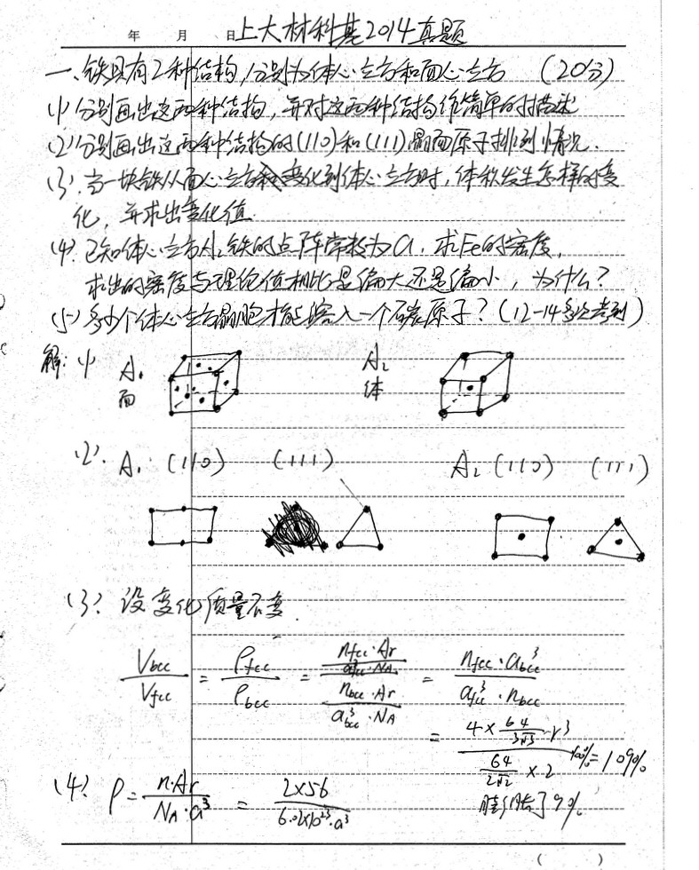 2014上海大学材料科学基础考研真题带详细答案手写版