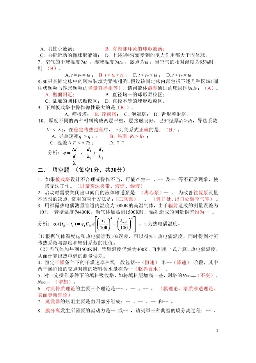 计算题考了流体力学 流体输送 过滤 换热器计算 吸收 精馏 干燥和思考题共8题(萃取蒸发在填空选择中考察) 大致说一下选择 填空题 总体不难,比以往考的简单