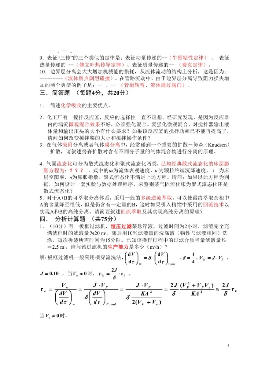 计算题考了流体力学 流体输送 过滤 换热器计算 吸收 精馏 干燥和思考题共8题(萃取蒸发在填空选择中考察) 大致说一下选择 填空题 总体不难,比以往考的简单
