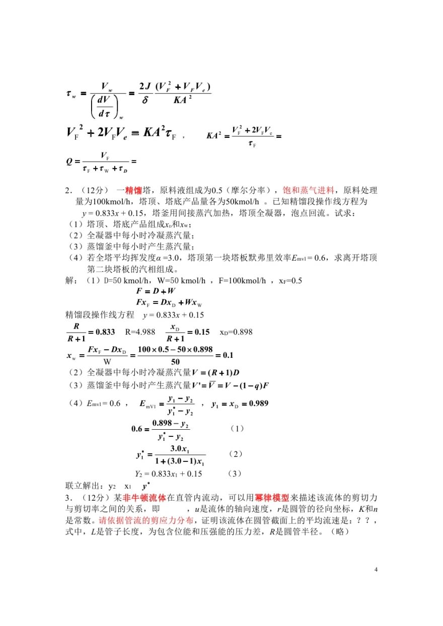 2007中国科学院研究生院化工原理考研试题(解答)答案(4)