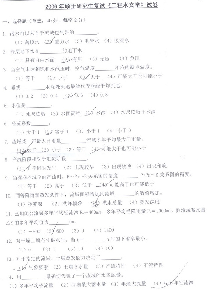 河海大学2011年硕士研究生复试试题 回忆版(李悦整理)一、选择题(2分13)二、填空题(1分10)1 若一日内水位变化较大,且不等时距观测或摘录,则采用 面积包围法 求日平均水位。2 缺乏实测径流资料时,设计年径流量及年内分配的分析计算目前常用的方法是 水文比拟法 和 参数等值线法 。3 水体污染源 ...