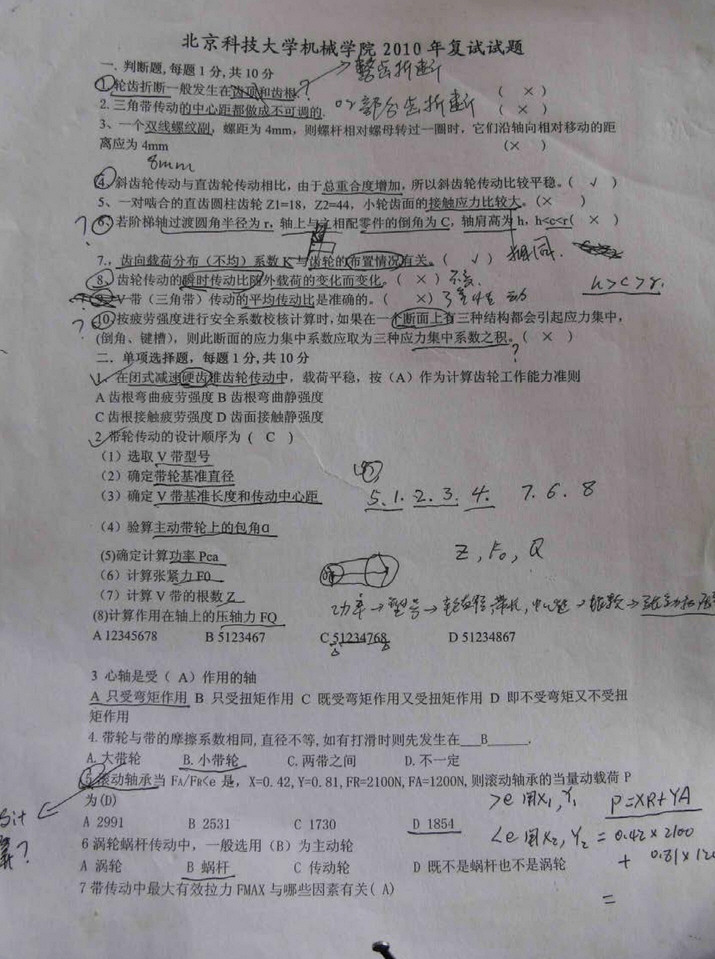 北京科技大学2010机械工程复试考研试题(照片版)