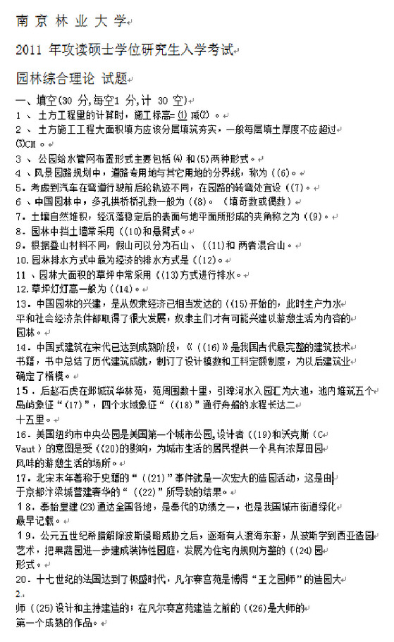 专业课考研资料 本站小编 免费考研网 2015-07-192002年南京林业大学园林综合理论