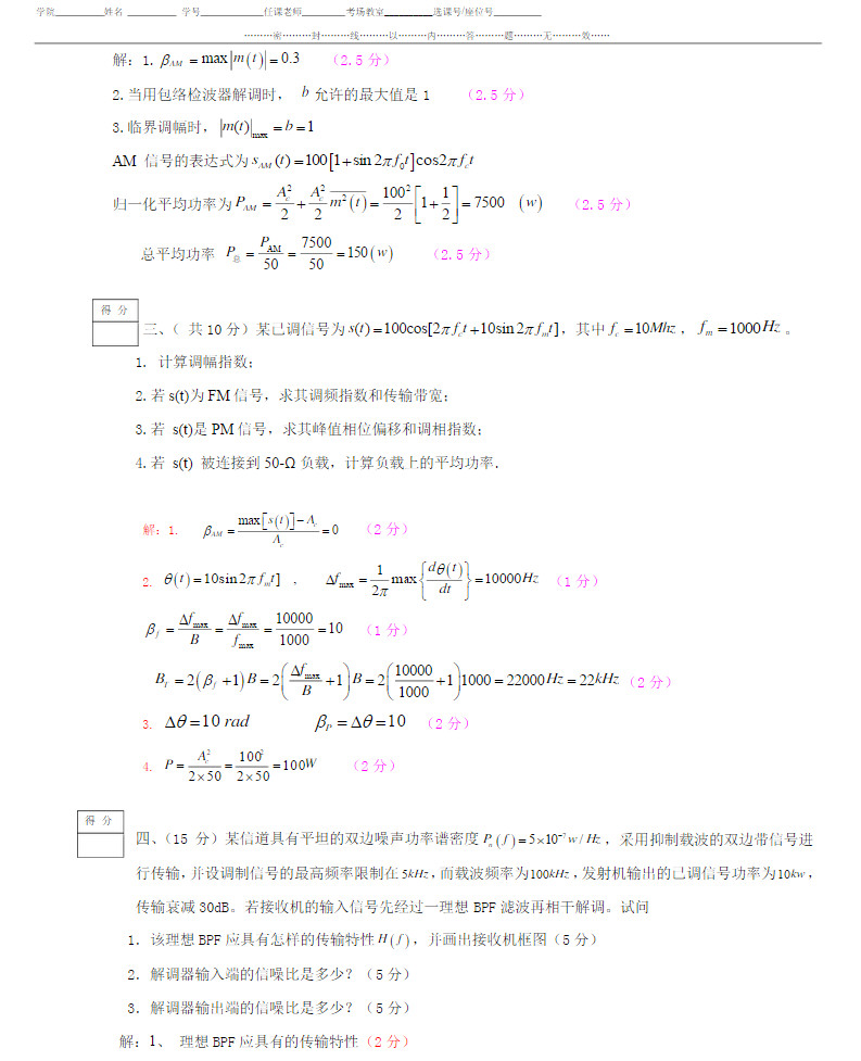 2014电子科技大学UESTC 通信原理期中考题及部分答案(2)