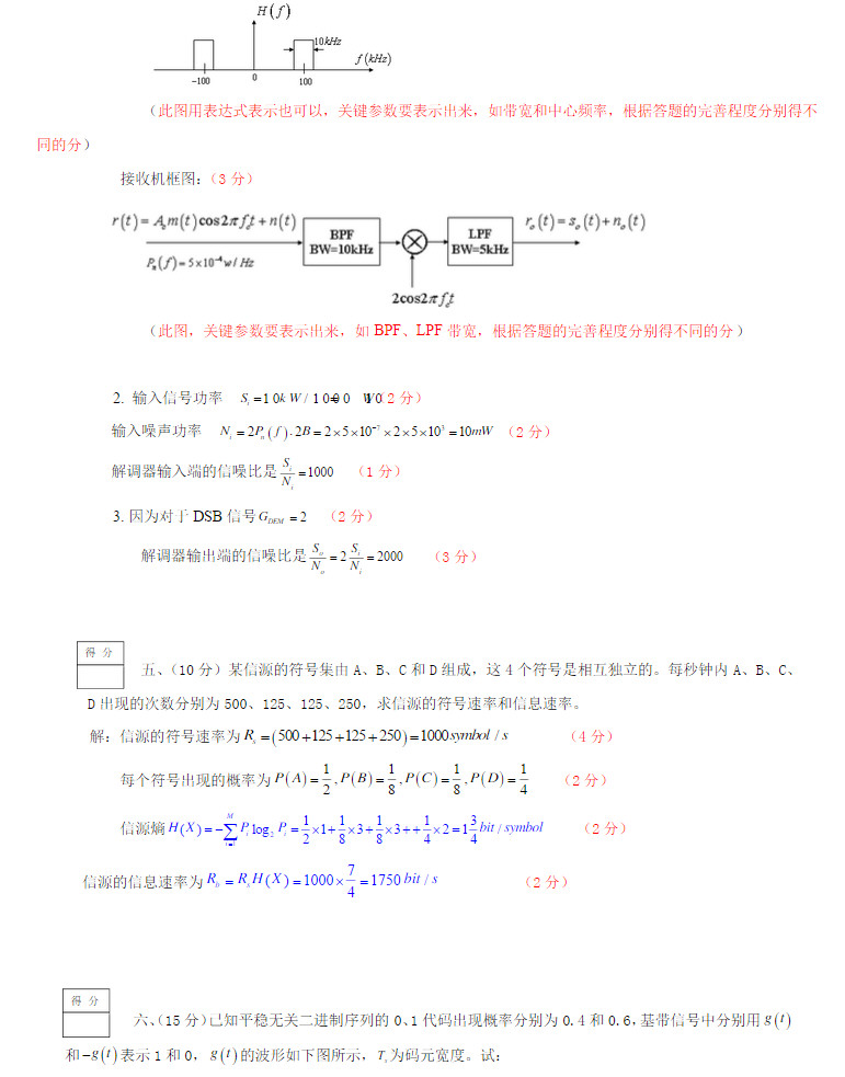 2014电子科技大学UESTC 通信原理期中考题及部分答案(3)