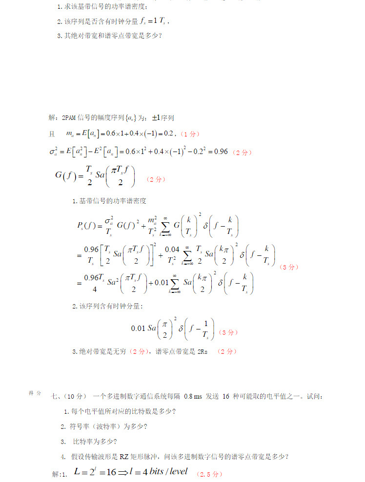 2014电子科技大学UESTC 通信原理期中考题及部分答案(4)