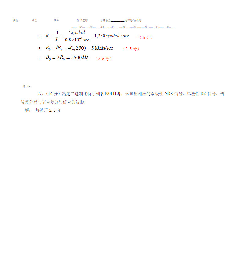 2014电子科技大学UESTC 通信原理期中考题及部分答案(5)