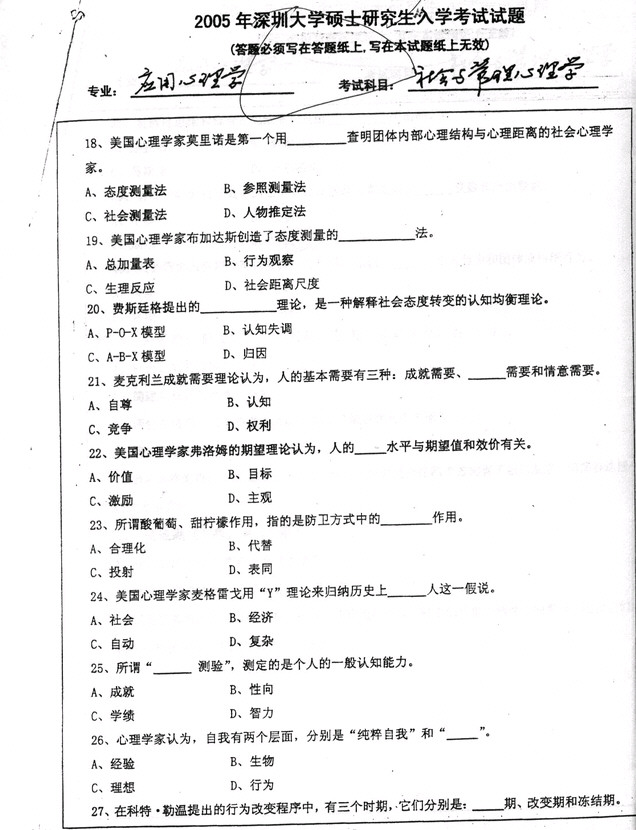 深圳大学社会与管理心理学2005考研专业课真题(3)