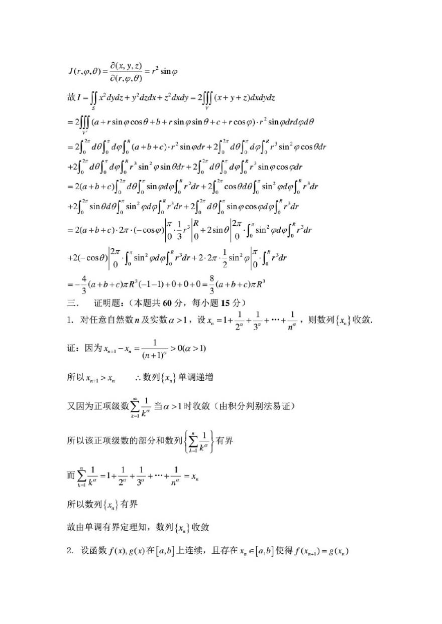 专业课考研资料 本站小编 网络资源 2015-07-14武汉大学2004数学分析试题解答