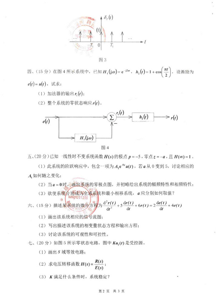 专业课考研资料 本站小编 免费考研网 2015-07-14西北工业大学2003信号与系统研究生入学考试笔试题