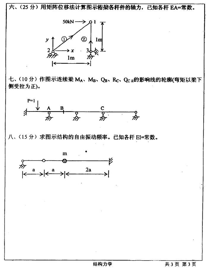 专业课考研资料 本站小编 免费考研网 2015-06-21西安建筑科技大学结构力学试卷(C)