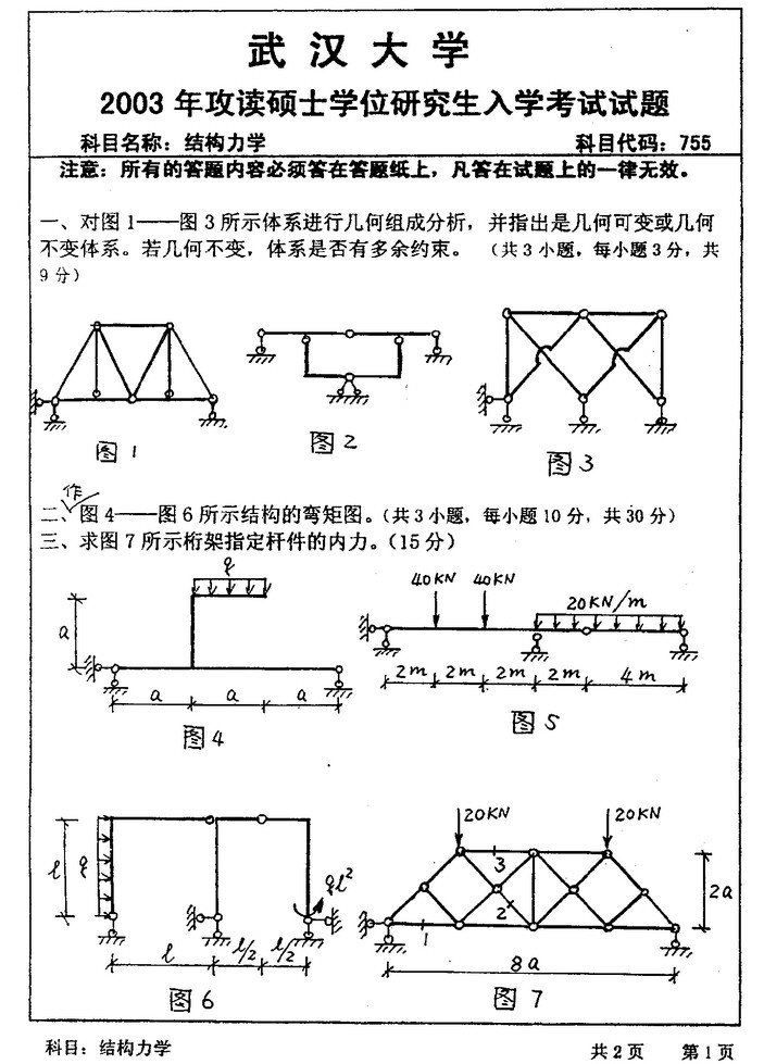 专业课考研资料 本站小编 免费考研网 2015-10-13同济大学2015材料力学与结构力学808考研真题回忆版